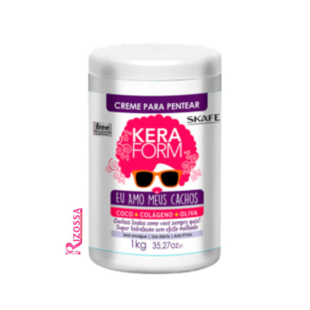 Desarrollado con excelentes ingredientes activos, Skafe Keraform Creme Para Pentear Eu Amo Meus Cachos está completamente libre de parabenos y petrolato. Ideal para el cabello rizado, ayuda a desenredar y dar acabado.