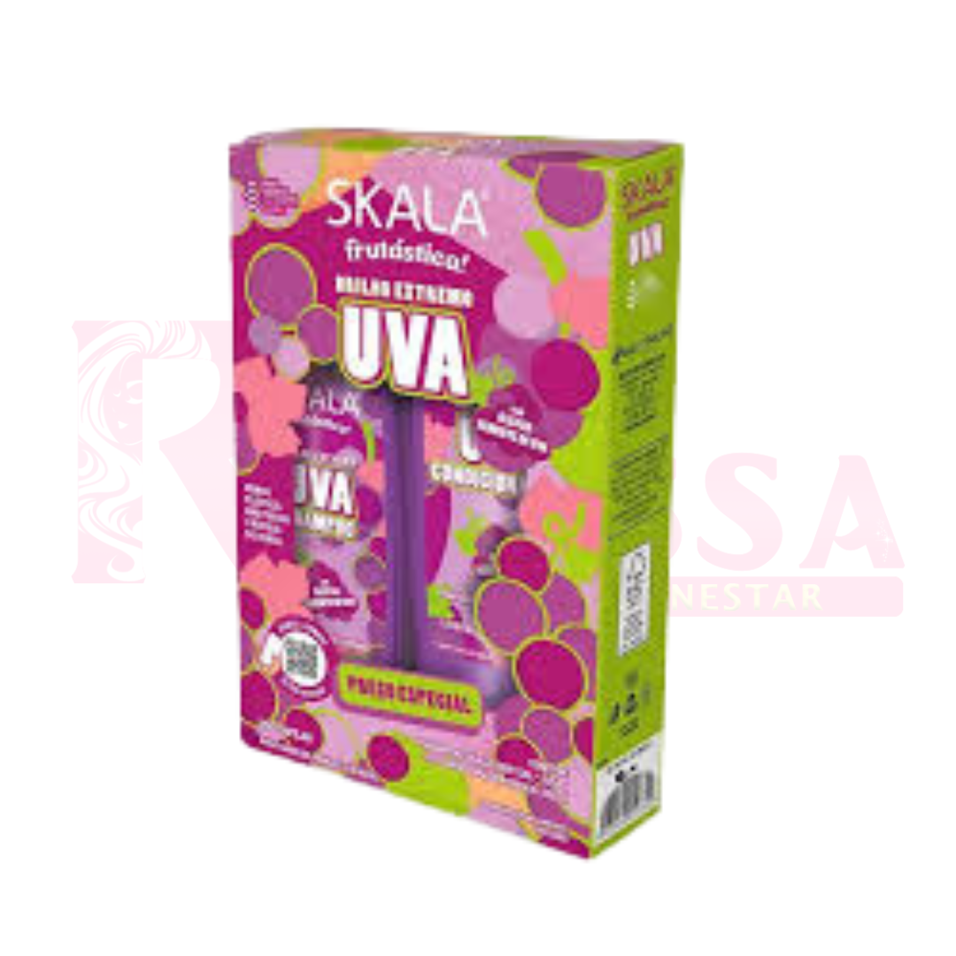 El Pack Shampoo y Acondicionador Uva Skala es la solución perfecta para revitalizar y nutrir el cabello. Formulados con extracto de uva, conocidos por sus propiedades antioxidantes y nutritivas, estos productos trabajan en conjunto para dejar el cabello más fuerte, brillante y lleno de vitalidad. El shampoo limpia suavemente, eliminando impurezas y exceso de grasa, mientras que el acondicionador proporciona hidratación, suavidad y un toque de frescura. Ideal para cabellos opacos o dañados, este pack ayuda a restaurar la salud del cabello, dejándolo más manejable, suave y con un brillo radiante.