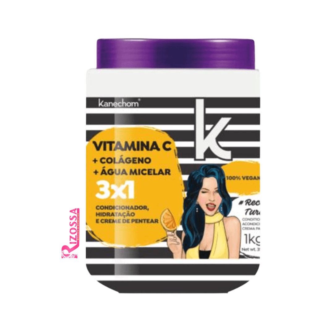 Sumérgete en un Baño de Vitaminas y Antioxidantes con la Máscara Capilar Vitamina C 3×1 Kanechom. Esta mascarilla enriquecida con Vitamina C es un Tratamiento Revitalizante que Nutre, Repara y Protege tu cabello, dejándolo brillante, suave y lleno de vida. Su fórmula 3 en 1 combina las propiedades de un Acondicionador, una Crema Hidratante y una Crema para Peinar, para ofrecerte resultados profesionales en un solo paso.